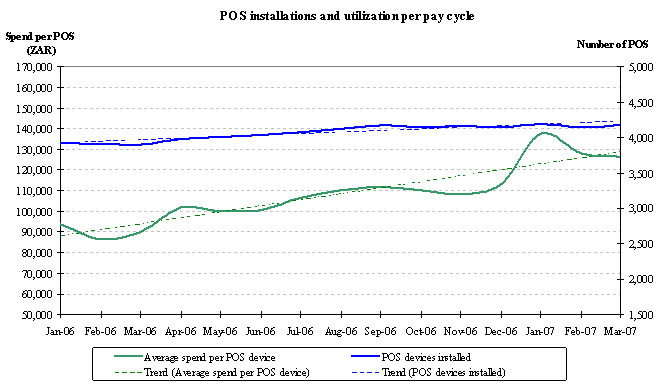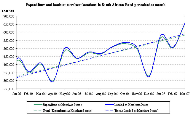 Cash used in investing activities for the nine months ended March 31, 2006 includes capital expenditure of $1.2 million (ZAR 7.7 million), of which $0.5 million (ZAR 3.5 million) related to the purchase of POS and pin-pad devices for use at retailers participating in our merchant acquiring project. In addition, during the first quarter of fiscal 2006 we invested $0.6 million (ZAR 3.9 million) in equity and lent $1.3 million (ZAR 7.8 million) to SmartSwitch Namibia, a UEPS based switching system established in Namibia. During the third quarter of fiscal 2006 we lent an additional $0.8 million (ZAR 4.8 million) to SmartSwitch Namibia.