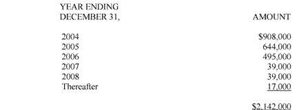 Rent expense, including escalations for operating costs, amounted to approximately $1,041,000, $844,000 and $905,000 for the years ended December 31, 2003, 2002 and 2001, respectively. Rent is being charged to expense over the entire lease term on a straight-line basis.