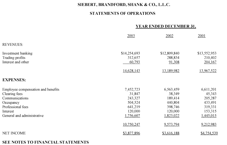 In our opinion, the financial statements enumerated above present fairly, in all material respects, the financial position of Siebert, Brandford, Shank & Co., L.L.C. as of December 31, 2003 and 2002, and the results of its operations and its cash flows for each of the years in the three-year period ended December 31, 2003, in conformity with accounting principles generally accepted in the United States of America.