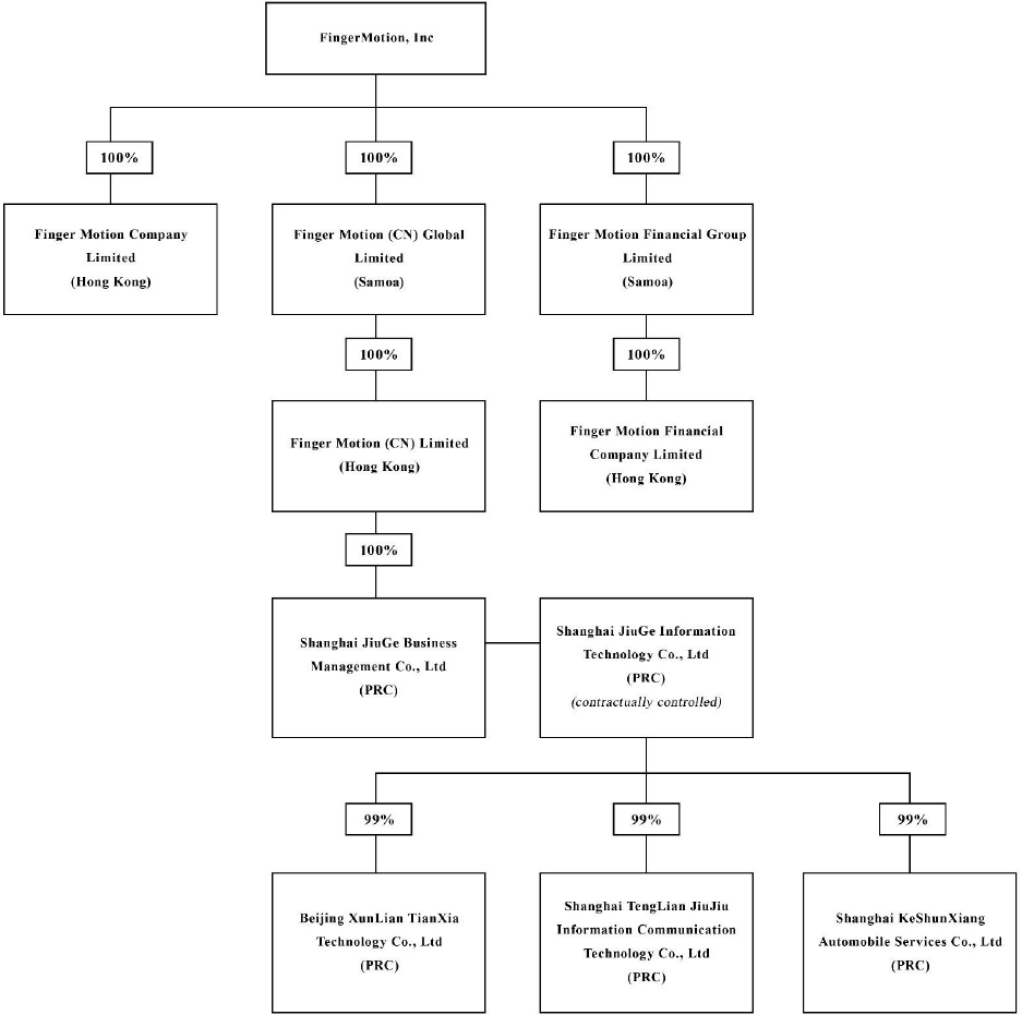 Finger Motion Financial Company Limited was incorporated on January 24, 2020 and is 100% owned by FingerMotion, Inc. The company has been activated for the insurtech business during the last quarter of the fiscal year 2021 where the Big Data division secured its first contract and recorded revenue.