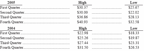 Cash Dividend — Prior to February 15, 2005, the Company had never declared a cash dividend. During each quarter of 2005, the Company’s Board of Directors declared a cash dividend of $0.06 per share of common stock. On February 13, 2006, the Company’s Board of Directors declared a $0.07 per share dividend that will be paid in the first quarter of 2006. The Company expects to continue to pay regular quarterly cash dividends, though each subsequent quarterly dividend is subject to review and approval by the Board of Directors.