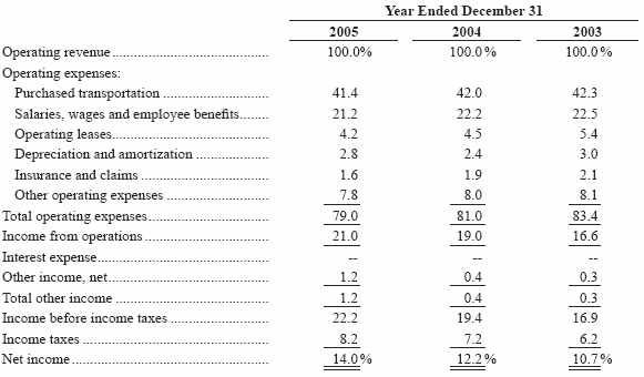 The Company purchased approximately $0.2 million and $0.9 million of truckload transportation services from Landair in 2004 and 2003, respectively, which are included in purchased transportation in the accompanying consolidated statements of income. No truckload transportation services were purchased during 2005.