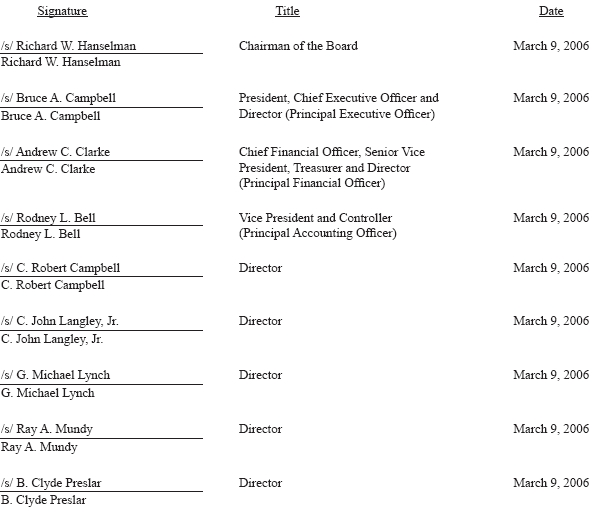 Non-Employee Director Options — In May 2005, 2004 and 2003, options to purchase 30,000, 56,250 and 33,750 shares of common stock, respectively, were granted to the non-employee directors of the Company at option prices of $25.87, $20.20 and $15.57 per share, respectively.