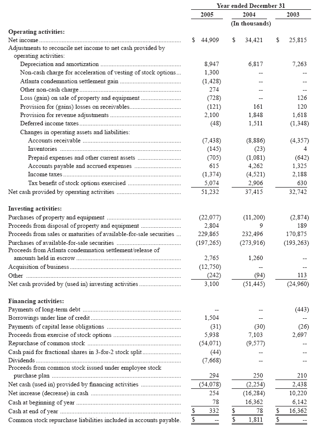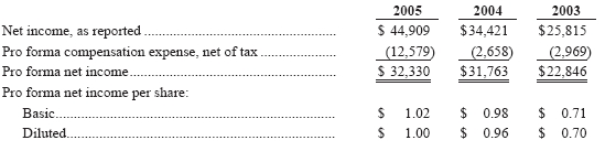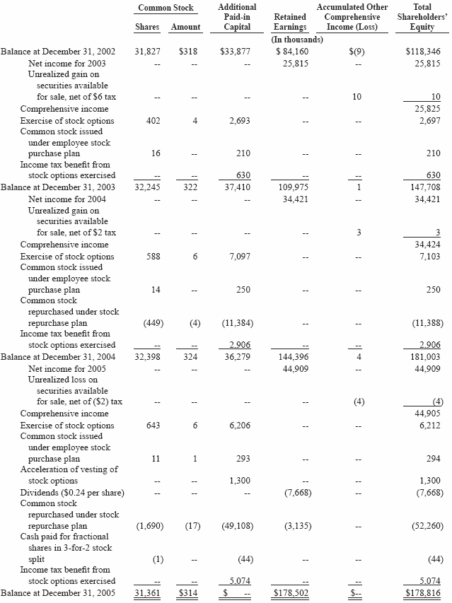 The tax benefits associated with the exercise of stock options during the years ended December 31, 2005, 2004 and 2003 were $5.1 million, $2.9 million and $0.6 million, respectively, and are reflected as an increase in additional paid-in capital in the accompanying consolidated statements of shareholders’ equity.