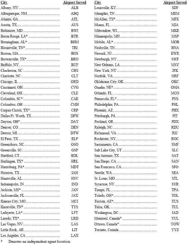 • Expansive Network of Terminals and Sorting Facilities. We have built a network of terminals and sorting facilities throughout the United States and Canada located on or near airports. We believe it would be difficult for a competitor to duplicate our network without the expertise and strategic facility locations we have acquired and without expending significant capital and management resources. Our network enables us to provide regularly scheduled service between most markets with low levels of freight damage or loss, all at rates generally significantly below air freight rates.