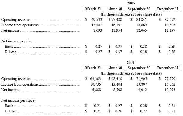 The following is a summary of the quarterly results of operations for the years ended December 31, 2005 and 2004: