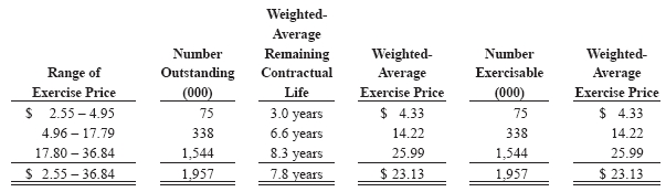 The following table summarizes information about stock options outstanding as of December 31, 2005: