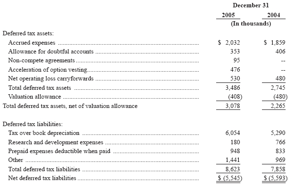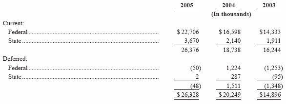 In addition to the provision for income taxes included in the accompanying consolidated statements of income, a deferred tax provision (benefit) of approximately ($2,000), $2,000 and $6,000 is included in other comprehensive income for the years ended December 31, 2005, 2004 and 2003, respectively.