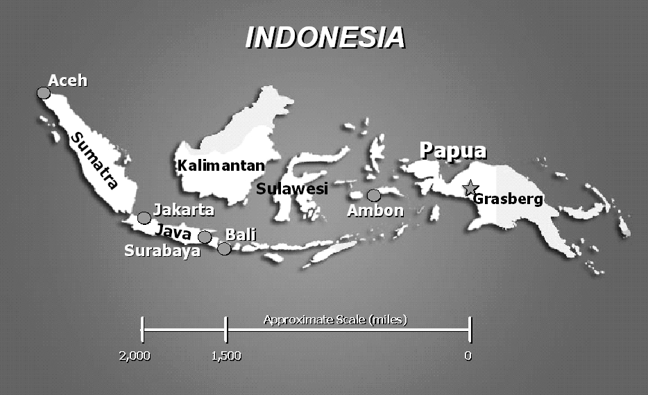 the distance from Papua to Bali (approximately 1,500 miles) and to Jakarta (approximately 2,000 miles);