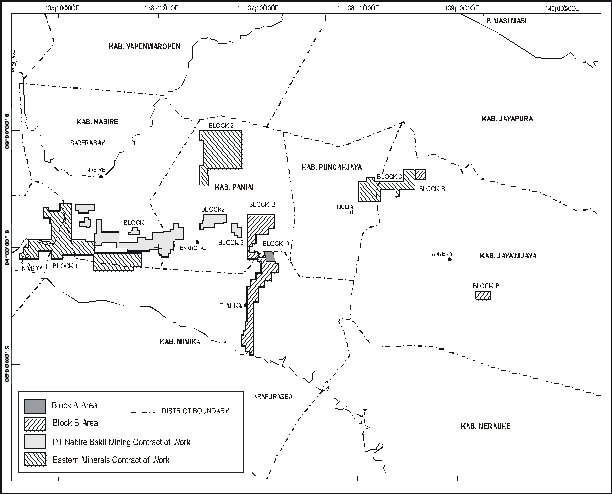 Under another joint venture agreement through PT Nabire Bakti Mining, we conduct exploration activities, which have been suspended since 2000 (see Contracts of Work), in an area covering approximately 500,000 acres in five parcels contiguous to PT Freeport Indonesia's Block B and one of Eastern Minerals' blocks.