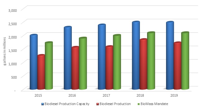 With respect to our biofuels segment, our plant has a demonstrated capacity in excess of 58 MMgy (million gallons per year). The plant ran at a slightly reduced rate during 2019 without the reinstatement of the blenders’ tax credit (“BTC”) for the majority of the year, which weakened market conditions for renewable fuel. In late December 2019, the BTC was retroactively reinstated from its expiry on January 1, 2018 through December 31, 2022. The future production of biodiesel is uncertain and will depend on various factors including: (i) changes in feedstock prices relative to biodiesel prices; (ii) competition from alternative products, such as renewable diesel; (iii) whether government mandates with respect to biodiesel usage remain in effect; (iv) whether certain tax credits with respect to biodiesel production remain in effect; and (v) competitiveness and availability of foreign imports. See the discussion below, including “Risk Factors” beginning at page 15 below.
