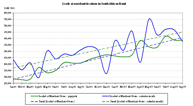 Cash used in investing activities for the three months ended September 30, 2007 includes capital expenditure of $0.7 million (ZAR 4.8 million), of which $0.2 million (ZAR 1.8 million) relates the acquisition of POS terminals for our merchant acquiring system.