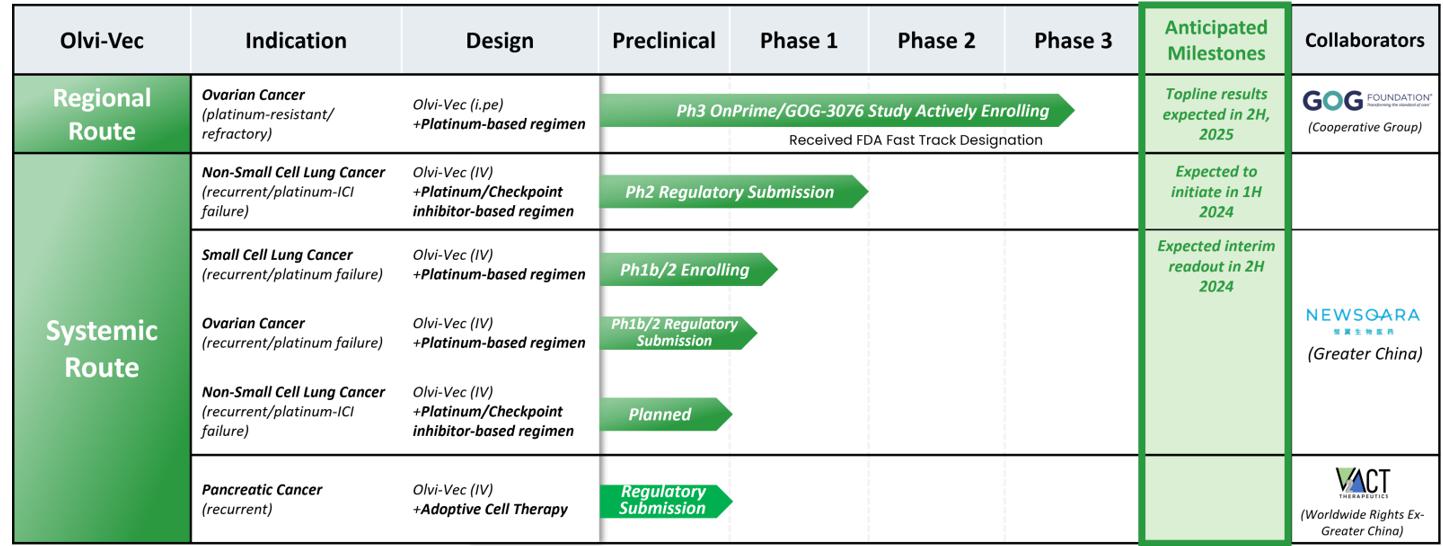 This Annual Report on Form 10-K (this Annual Report) contains forward-looking statements within the meaning of the federal securities laws made pursuant to the safe harbor provisions of the Private Securities Litigation Reform Act of 1995. All statements other than statements of historical facts contained in this Annual Report, including statements regarding our future results of operations and financial position, business strategy, research and development costs; the anticipated timing, costs and conduct of our clinical trials for our only product candidate, Olvi-Vec; the timing and likelihood of regulatory filings and approvals for Olvi-Vec; our ability to commercialize Olvi-Vec, if approved; the pricing and reimbursement of Olvi-Vec, if approved; the potential benefits of strategic collaborations and our ability to enter into strategic arrangements; the timing and likelihood of success, plans and objectives of management for future operations; future results of anticipated product development efforts; and our expected future financing needs, are forward-looking statements. These statements involve known and unknown risks, uncertainties and other important factors that may cause our actual results, performance or achievements to be materially different from any future results, performance or achievements expressed or implied by the forward-looking statements.