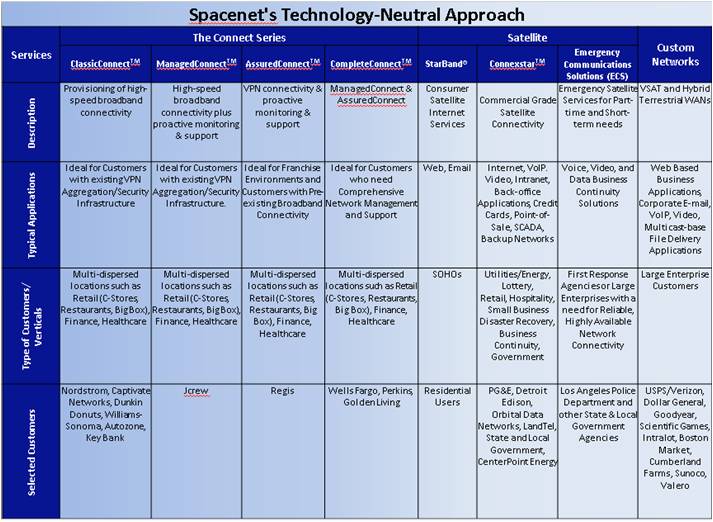 Service division, which includes Spacenet, provides managed network services for business, government and residential customers in North America, as well as service businesses in Peru and Colombia, which offer rural telephony and Internet access solutions.