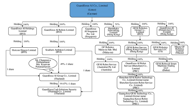 Guardforce AI Co., Ltd.International Financial Reporting Standards153795951878635Others includes revenues from express cash, coin processing services and international shipment.Includes a provision for penalty for failure to meet certain performance indicators as stipulated in certain customer contracts for approximately $5,900 and $14,600 respectively.This amount represents profit before income tax after adjustments for non-deductible and non-taxable expense items from the Thailand operating entity.2.18During the year ended December 31, 2020 and 2019, depreciation expense of $700,741 and $547,513 relating to the right of use assets was recorded as rental expense, respectively.Other expenses mainly comprised of office expenses, stamp duties, training costs, etc.Amounts due to Guardforce Holdings (HK) Limited comprised of $28,896 advances made and $134,694 accrued interests on the loans.Amounts due to Shenzhen Intelligent Guardforce Robot Technology Co., Limited represent accounts payable for the purchase of robots from a related party.Amounts due to Richard Stagg represent advance from a related party with no fixed term of repayment. The interest rate was 8% per annum for the year ended December 31, 2021, which had been reduced to 3% per annum beginning January 1, 2022.Amounts due to Mr. Tu Jingyi and Profit Raider Investment Limited represented interest accrued on the respective loans.On April 29, 2018, Guardforce TH Group Company Limited entered into an agreement with Profit Raider Investment Limited to transfer the loan between Guardforce TH and the Company to Profit Raider. As a result, the Company recorded a short-term borrowing from a third party in the amount of $13.42 million bearing interest at 4% from April 30, 2019 to December 31, 2019 and 3.22% prior to April 30, 2019. The Company assumed an additional liability of approximately $576,000 which has been treated as an additional expense paid in 2018. The holding companies have guaranteed the short-term borrowings from Profit Raider which amount is due on December 31, 2020. On March 13, 2020, the Company’s Board of Directors approved the transfer of 1,666,666 ordinary shares of Guardforce AI Co. Limited from Guardforce AI Technology to Profit Raider. As a result of this share transfer, Profit Raider is deemed an affiliate of the Company and therefore this borrowing is presented as a related party loan since March 2020 and the loan was extended to December 31, 2022 with the same terms and conditions with an interest rate at 4%. For the year ended December 31, 2021, 2020 and 2019, interest expense was $612,387, $579,039 and $293,827, respectively. As of the date of this report, the Company has been negotiating with Profit Raider on the further extension of loan which will be due on December 31, 2022.On December 31, 2019, the Company entered into an agreement with Guardforce Holdings (HK) Limited whereby Guardforce Holdings (HK) Limited loaned $1,499,998 to the Company. The loan is unsecured and it bears an interest rate of 3%. The loan was initially due on December 31, 2020. During the year ended December 31, 2021 and 2020, the Company repaid $245,000 and $507,998 to partially settle the principal, respectively. The loan was extended to December 22, 2022 bearing interest rate at 2%. For the years ended December 31, 2021 and 2020, interest expense on this loan was $14,940 and $19,840, respectively. On April 17, 2020, the Company borrowed $2,735,000. The loan is unsecured and bears an interest rate at 2%. The loan is due on April 16, 2023. For the year ended December 31, 2021 and 2020, interest expense on this loan was $54,700 and $34,187, respectively. On September 9, 2020, the Company borrowed $413,500. The loan is unsecured and it bears interest at 2%. The loan is due on September 8, 2023. For the year ended December 31, 2021 and 2020, interest expense on this loan was $8,270 and $2,757, respectively.Perfekt Technology & System Co., Ltd. provided security equipment to the Company;Guardforce Aviation Security Co., Ltd. provided escort services to the Company;Guardforce Limited and GF Technovation Company Limited are fellow subsidiaries. GF Technovation Company Limited was incorporated in 2021 for running robotics related business. The Company sold robots to GF Technovation Company Limited in place of Guardforce Limited beginning March 2021.The Company purchased robots from Shenzhen Intelligent Guardforce Robot Technology Co., Limited;Guardforce Security (Thailand) Co., Ltd. provided security guard services to the Company;(a) The Company has engaged Stander Information Company Limited (“Stander”) to provide technical services relating to the cash management systems for the Company’s secure logistics business. The service agreement with Stander comprised of a monthly fixed service fee and certain other fees as specified in the agreement. In 2022, the Company plans to acquire their own cash management system to replace Stander’s services, the acquisition cost of the system is approximately $1.1 million (THB36.7 million).6.485044falseFY000180446900018044692021-01-012021-12-310001804469dei:BusinessContactMember2021-01-012021-12-3100018044692021-12-3100018044692020-12-3100018044692020-01-012020-12-3100018044692019-01-012019-12-310001804469ifrs-full:IssuedCapitalMember2018-12-310001804469gfai:SubscriptionReceivableMember2018-12-310001804469gfai:AdditionalPaidInCapitalsMember2018-12-310001804469gfai:LegalReservesMember2018-12-310001804469ifrs-full:AccumulatedOtherComprehensiveIncomeMember2018-12-310001804469ifrs-full:RetainedEarningsMember2018-12-310001804469ifrs-full:NoncontrollingInterestsMember2018-12-3100018044692018-12-310001804469ifrs-full:AccumulatedOtherComprehensiveIncomeMember2019-01-012019-12-310001804469ifrs-full:RetainedEarningsMember2019-01-012019-12-310001804469ifrs-full:NoncontrollingInterestsMember2019-01-012019-12-310001804469ifrs-full:IssuedCapitalMember2019-12-310001804469gfai:SubscriptionReceivableMember2019