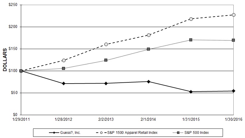 Performance Share Award Agreement dated as of May 1, 2015 between the Registrant and Paul Marciano (incorporated by reference from the Registrant’s Quarterly Report on Form 10-Q for the quarter ended May 2, 2015).