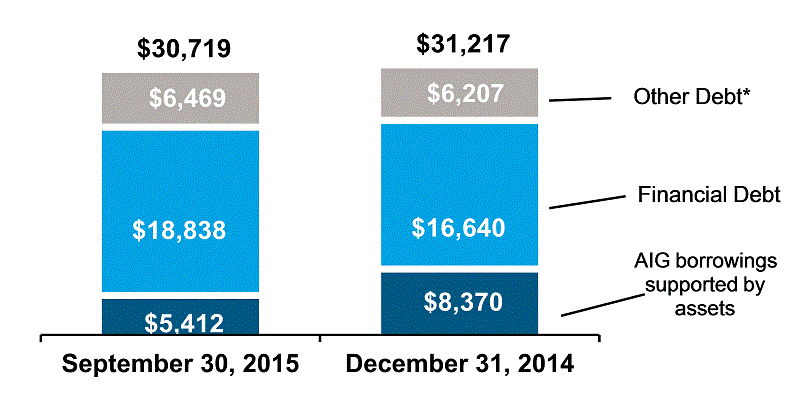 During the three-month period ended September 30, 2015, we repurchased approximately 61 million shares of AIG Common Stock under this authorization for an aggregate purchase price of approximately $3.7 billion.  Pursuant to an Exchange Act Rule 10b5-1 plan, from October 1 to October 31, 2015, we have repurchased approximately $602 million of additional shares of AIG Common Stock.