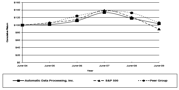 The following graph compares the cumulative return on the Companys common stock(a) for the most recent five years with the cumulative return on the S&P 500 Index and a Peer Group Index(b), assuming an initial investment of $100 on June 30, 2004, with all dividends reinvested.