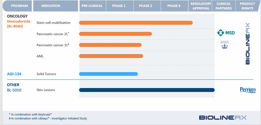 In accordance with the license agreement of BL-8040 with Biokine (as amended), the Company is required to pay Biokine a payment of 20% of amounts received as consideration in connection with any sublicensing or sale of the licensed technology. Biokine is also eligible to receive up to a total of $5 million in future milestone payments. Subject to certain limitations, if the Company independently sell products related to BL-8040, the Company will pay Biokine a royalty payment of 10% of net sales.
