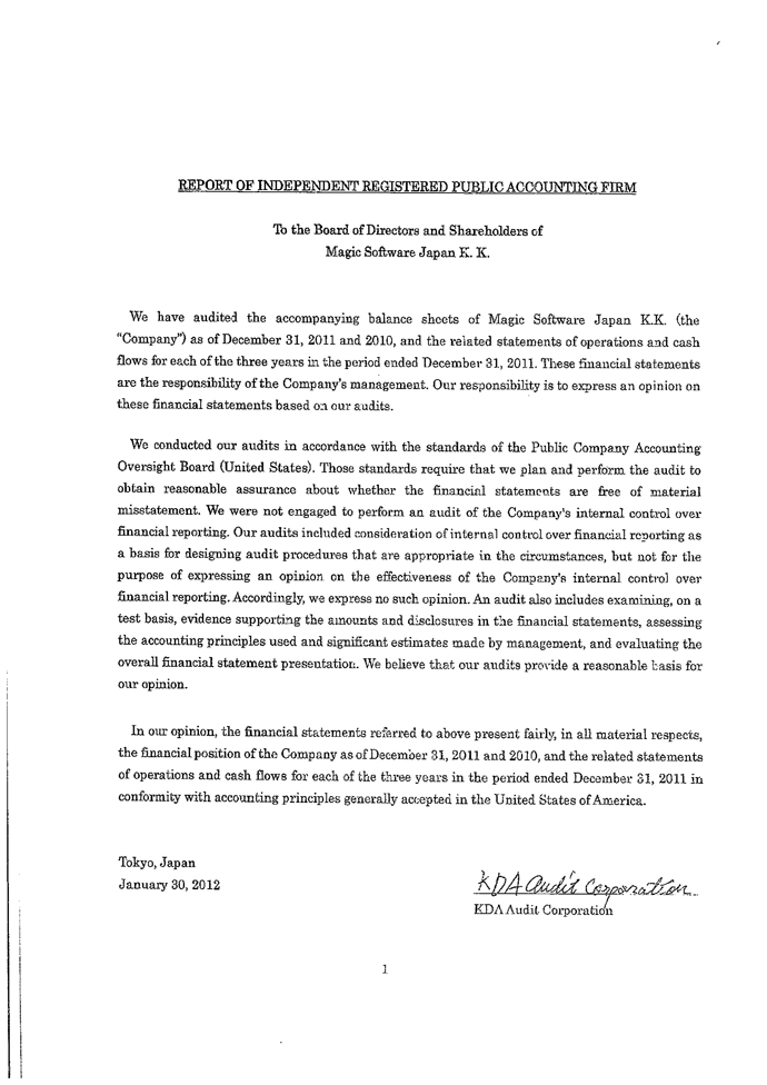 We have audited the accompanying consolidated statements of operations, changes in equity and cash flows for the year ended December 31, 2009 of Formula Systems (1985) Ltd. and its subsidiaries (the “Company”). These financial statements are the responsibility of the Company’s management. Our responsibility is to express an opinion on these financial statements based on our audits.