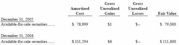 The following is a summary of available-for-sale securities at December 31, 2005 and 2004 (in thousands):