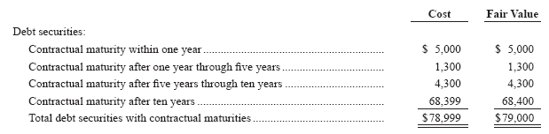 The net carrying value and estimated fair value of debt securities at December 31, 2005 by contractual maturity are shown below. Expected maturities will differ from contractual maturities because the Company has the intent and ability to sell prior to stated maturity without penalty (via auction).
