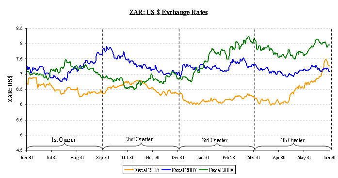 The following tables contain selected unaudited consolidated statements of income for each quarter of fiscal 2008 and 2007:
