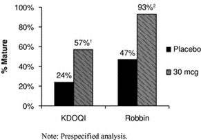 The benefit of vonapanitase on primary unassisted patency was most pronounced in the subset of patients undergoing creation of a radiocephalic AVF. The subset analysis of this endpoint for radiocephalic AVF patients receiving the 30 microgram dose, which was not prespecified, showed a significant increase in median primary unassisted patency of >365 days as compared to 125 days in the placebo group. In addition, we observed beneficial drug effects on additional efficacy endpoints, including unassisted maturation, defined as increased vessel diameter and blood flow without the need for an intervention such as angioplasty; rate of procedures to restore or maintain AVF patency; secondary patency, defined as abandonment of the AVF and the need for creation of a new vascular access; use for hemodialysis; and hemodynamically significant stenosis, or narrowing of blood vessels.