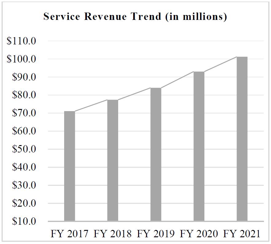 We believe our combined Service and Distribution segment offerings, experience, technical expertise and integrity create a unique and compelling value proposition for our customers, and we intend to continue to grow our business through organic revenue growth and business acquisitions. We consider the attributes of our Service segment, which include higher gross margins and recurring revenue streams from customers in regulated industries to be more compelling and scalable than our legacy Distribution segment. For this reason, we expect our Service segment to be the primary source of revenue and earnings growth in future fiscal years. The charts below illustrate Service, Distribution and consolidated revenue over the past five years: