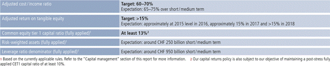 Annual publications: Annual report (SAP no. 80531): Published in both English and German, this single volume report provides a description of our Group strategy and performance; the strategy and performance of the business divisions and the Corporate Center; a description of risk, treasury, capital management, corporate governance, responsibility and senior management compensation, including compensation for the Board of Directors and the Group Executive Board members; and financial information, including the financial statements. Review (SAP no. 80530): The booklet contains key information on our strategy and financials. It is published in English, German, French and Italian. Compensation Report (SAP no. 82307): The report discusses our compensation framework and provides information on compensation for the Board of Directors and the Group Executive Board members. It is published in English and German.