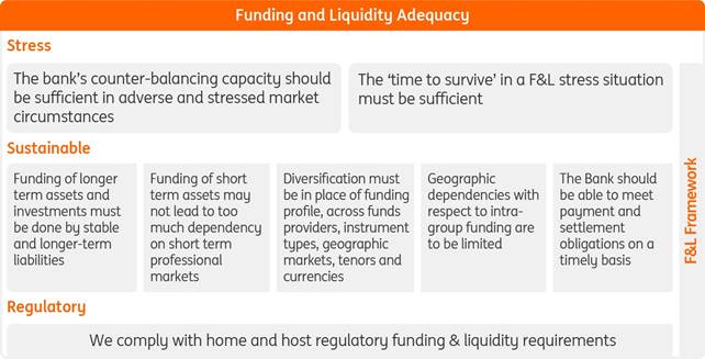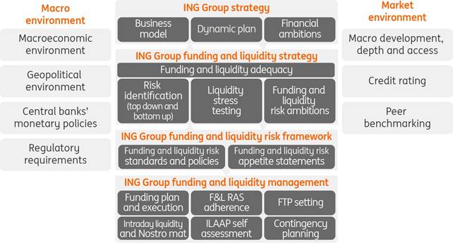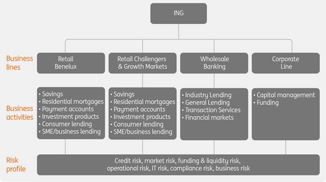 base case and adverse scenarios including stress testing. Based on this documentation and continuous supervisory dialogue, the ECB conducts the SREP assessment of ING and its main subsidiaries. This assessment covered four areas: business model, internal governance and risk management, risks to capital and risks to liquidity and funding on a yearly basis.