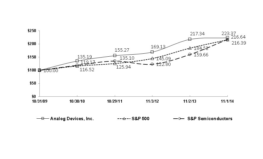 Amended and Restated 2006 Stock Incentive Plan of Analog Devices, Inc., filed as exhibit 10.1 to the Company's Quarterly Report on Form 10-Q for the fiscal quarter ended February 1, 2014 (File No. 1-7819) as filed with the Commission on February 18, 2014 and incorporated herein by reference.