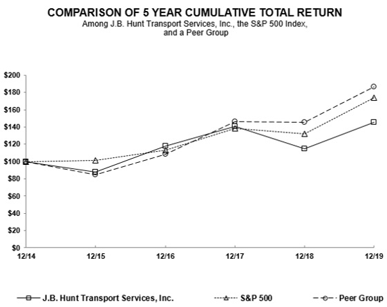 0000728535HUNT J B TRANSPORT SERVICES INCfalse--12-31FY2019404101010500,000500,000100,000100,000002016 2017 2018 20192009 2010 2011 2012 2013 2014 2015 2016 2017 2018 2019034.929.920.713.70011.711.711.710010010,000,00010,000,000000.010.011,000,000,0001,000,000,000167,099,432167,099,432106,212,908108,710,82560,886,52458,388,6070.920.961.0400007285352019-01-012019-12-31iso4217:USD00007285352019-06-30xbrli:shares00007285352020-02-18thunderdome:item0000728535us-gaap:AllowanceForCreditLossMember2016-12-310000728535us-gaap:AllowanceForCreditLossMember2017-01-012017-12-310000728535us-gaap:AllowanceForCreditLossMember2017-12-310000728535us-gaap:AllowanceForCreditLossMember2018-01-012018-12-310000728535us-gaap:AllowanceForCreditLossMember2018-12-310000728535us-gaap:AllowanceForCreditLossMember2019-01-012019-12-310000728535us-gaap:AllowanceForCreditLossMember2019-12-3100007285352019-12-3100007285352018-12-310000728535jbht:ServiceExcludingFuelSurchargeMember2019-01-012019-12-310000728535jbht:ServiceExcludingFuelSurchargeMember2018-01-012018-12-310000728535jbht:ServiceExcludingFuelSurchargeMember2017-01-012017-12-310000728535jbht:FuelSurchargeMember2019-01-012019-12-310000728535jbht:FuelSurchargeMember2018-01-012018-12-310000728535jbht:FuelSurchargeMember2017-01-012017-12-3100007285352018-01-012018-12-3100007285352017-01-012017-12-31iso4217:USDxbrli:shares0000728535us-gaap:CommonStockMember2016-12-310000728535us-gaap:AdditionalPaidInCapitalMember2016-12-310000728535us-gaap:RetainedEarningsMember2016-12-310000728535us-gaap:TreasuryStockMember2016-12-3100007285352016-12-310000728535us-gaap:CommonStockMember2017-01-012017-12-310000728535us-gaap:AdditionalPaidInCapitalMember2017-01-012017-12-310000728535us-gaap:RetainedEarningsMember2017-01-012017-12-310000728535us-gaap:TreasuryStockMember2017-01-012017-12-310000728535us-gaap:CommonStockMember2017-12-310000728535us-gaap:AdditionalPaidInCapitalMember2017-12-310000728535us-gaap:RetainedEarningsMember2017-12-310000728535us-gaap:TreasuryStockMember2017-12-3100007285352017-12-310000728535us-gaap:CommonStockMember2018-01-012018-12-310000728535us-gaap:AdditionalPaidInCapitalMember2018-01-012018-12-310000728535us-gaap:RetainedEarningsMember2018-01-012018-12-310000728535us-gaap:TreasuryStockMember2018-01-012018-12-310000728535us-gaap:CommonStockMember2018-12-310000728535us-gaap:AdditionalPaidInCapitalMember2018-12-310000728535us-gaap:RetainedEarningsMember2018-12-310000728535us-gaap:TreasuryStockMember2018-12-310000728535us-gaap:CommonStockMember2019-01-012019-12-310000728535us-gaap:AdditionalPaidInCapitalMember2019-01-012019-12-310000728535us-gaap:RetainedEarningsMember2019-01-012019-12-310000728535us-gaap:TreasuryStockMember2019-01-012019-12-310000728535us-gaap:CommonStockMember2019-12-310000728535us-gaap:AdditionalPaidInCapitalMember2019-12-310000728535us-gaap:RetainedEarningsMember2019-12-310000728535us-gaap:TreasuryStockMember2019-12-31xbrli:pure0000728535us-gaap:TradeAccountsReceivableMember2019-12-310000728535us-gaap:TradeAccountsReceivableMember2018-12-310000728535jbht:OtherReceivablesMember2018-12-310000728535jbht:OtherReceivablesMember2019-12-31utr:Y0000728535jbht:TractorsMembersrt:MinimumMember2019-01-012019-12-310000728535jbht:TractorsMembersrt:MaximumMember2019-01-012019-12-310000728535jbht:TrailingEquipmentMembersrt:MinimumMember2019-01-012019-12-310000728535jbht:TrailingEquipmentMembersrt:MaximumMember2019-01-012019-12-310000728535us-gaap:LandBuildingsAndImprovementsMembersrt:MinimumMember2019-01-012019-12-310000728535us-gaap:LandBuildingsAndImprovementsMembersrt:MaximumMember2019-01-012019-12-310000728535jbht:ComputerHardwareAndSoftwareMembersrt:MinimumMember2019-01-012019-12-310000728535jbht:ComputerHardwareAndSoftwareMembersrt:MaximumMember2019-01-012019-12-310000728535us-gaap:FurnitureAndFixturesMembersrt:MinimumMember2019-01-012019-12-310000728535us-gaap:FurnitureAndFixturesMembersrt:MaximumMember2019-01-012019-12-310000728535srt:MinimumMember2019-12-310000728535srt:MaximumMember2019-12-310000728535us-gaap:SalesRevenueNetMemberus-gaap:CustomerConcentrationRiskMember2019-01-012019-12-310000728535us-gaap:SalesRevenueNetMemberus-gaap:CustomerConcentrationRiskMember2018-01-012018-12-310000728535us-gaap:SalesRevenueNetMemberus-gaap:CustomerConcentrationRiskMember2017-01-012017-12-310000728535us-gaap:SalesRevenueNetMemberus-gaap:CustomerConcentrationRiskMemberjbht:Top10CustomersMember2019-01-012019-12-310000728535us-gaap:SalesRevenueNetMemberus-gaap:CustomerConcentrationRiskMemberjbht:Top10CustomersMember2018-01-012018-12-310000728535us-gaap:SalesRevenueNetMemberus-gaap:CustomerConcentrationRiskMemberjbht:Top10CustomersMember2017-01-012017-12-310000728535us-gaap:AccountsReceivableMemberus-gaap:CustomerConcentrationRiskMemberjbht:Top10CustomersMember2019-01-012019-12-310000728535us-gaap:AccountsReceivableMemberus-gaap:CustomerConcentrationRiskMemberjbht:Top10CustomersMember2018-01-012018-12-310000728535jbht:AccountsAndOtherReceivablesNetCurrentMember2019-12-310000728535jbht:AccountsAndOtherReceivablesNetCurrentMember2018-12-310000728535srt:MinimumMember2019-01-012019-12-310000728535srt:MaximumMember2019-01-012019-12-310000728535us-gaap:AccountingStandardsUpdate201602Member2019-01-010000728535us-gaap:LineOfCreditMember2019-12-310000728535us-gaap:LineOfCreditMember2018-12-310000728535us-gaap:SeniorNotesMember2019-12-310000728535us-gaap:SeniorNotesMember2018-12-310000728535us-gaap:RevolvingCreditFacilityMember2019-12-310000728535jbht:SeniorNotesFirstIssuanceMemberus-gaap:SeniorNotesMember2019-12-310000728535jbht:SeniorNotesSecondIssuanceMemberus-gaap:SeniorNotesMember2019-12-310000728535jbht:SeniorNotesThirdIssuanceMemberus-gaap:SeniorNotesMember2019-12-310000728535jbht:The240PercentSeniorNotesMemberus-gaap:SeniorNotesMember2019-03-012019-03-310000728535jbht:The240PercentSeniorNotesMemberus-gaap:SeniorNotesMember2019-03-310000728535jbht:SeniorNotesSecondIssuanceMemberus-gaap:InterestRateSwapMemberus-gaap:FairValueHedgingMemberus-gaap:LondonInterbankOff