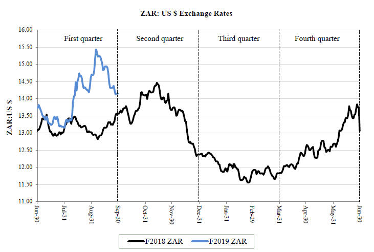 The following table illustrates the effect on our annual expected interest charge, translated at exchange rates applicable as of September 30, 2018, as a result of changes in the JIBAR rate. The effect of a hypothetical 1% (i.e. 100 basis points) increase and a 1% decrease in the JIBAR rate as of September 30, 2018, are shown. The selected 1% hypothetical change does not reflect what could be considered the best or worst case scenarios.