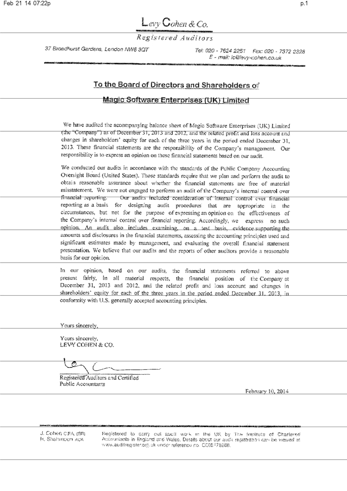 Magic Software Enterprises (UK) Ltd.  100  U.K.