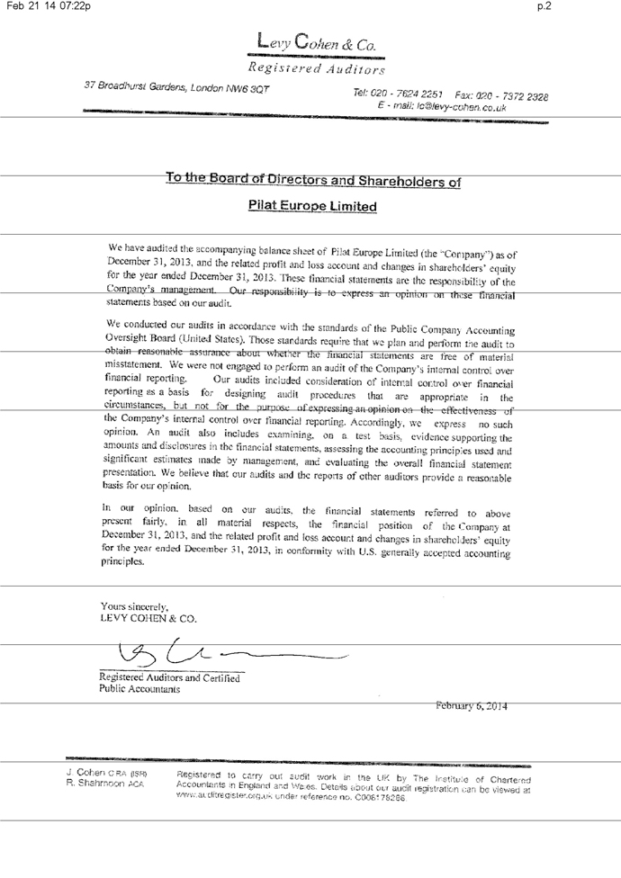 Pilat Europe Ltd  100  U.K.