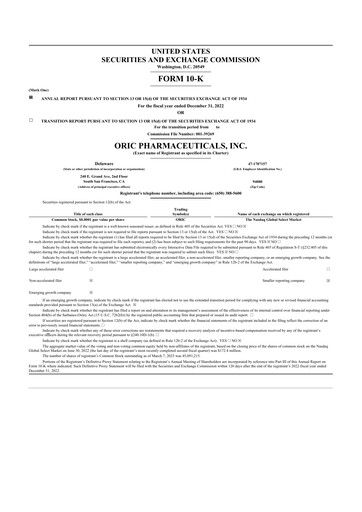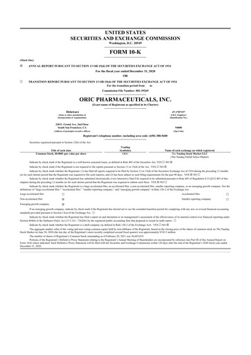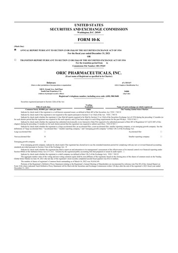 Latest form 10-K annual reports for ORIC Pharmaceuticals CIK: 0001796280