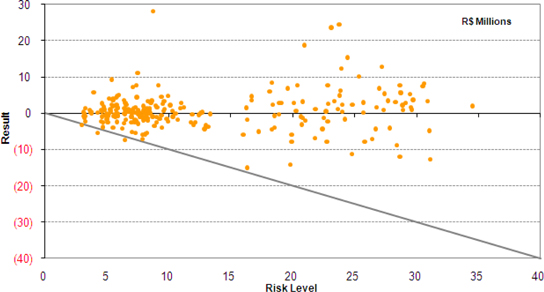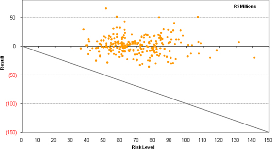In this period, the average global VaR was R$ 142.0 million or 0.19% of total stockholders’ equity (throughout 2010 it was R$ 109,4 million or 0.16%).