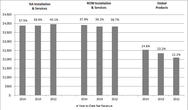 Net revenue excludes $154 million, $151 million, $85 million and $5 million of net revenue related to discontinued operations for the first, second, third and fourth quarters of 2014, respectively.