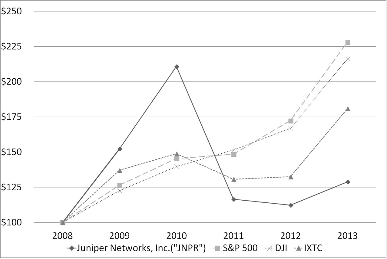 The following materials from Juniper Networks Inc.'s Annual Report on Form 10-K for the year ended December 31, 2013, formatted in XBRL (Extensible Business Reporting Language): (i) the Consolidated Statements of Operations, (ii) Consolidated Statements of Comprehensive Income, (iii) Consolidated Balance Sheets, (iv) the Consolidated Statements of Cash Flows, and (v) Consolidated Statements of Changes in Stockholders' Equity, and (iv) Notes to Consolidated Financial Statements, tagged as blocks of text