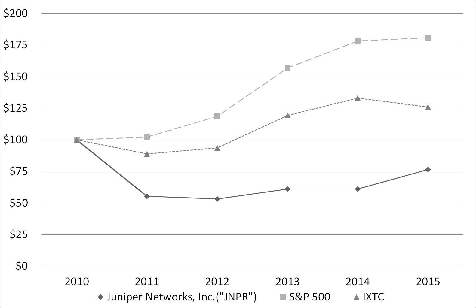 The following materials from Juniper Networks Inc.'s Annual Report on Form 10-K for the year ended December 31, 2015, formatted in XBRL (Extensible Business Reporting Language): (i) the Consolidated Statements of Operations, (ii) Consolidated Statements of Comprehensive Income, (iii) Consolidated Balance Sheets, (iv) the Consolidated Statements of Cash Flows, and (v) Consolidated Statements of Changes in Stockholders' Equity, and (iv) Notes to Consolidated Financial Statements, tagged as blocks of text
