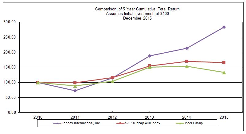 Amendment to the Amended and Restated Receivables Purchase Agreement, effective as of December 15, 2014, among LPAC Corp., as the Seller, Lennox Industries Inc., as the Master Servicer, with Victory Receivables Corporation, as Purchaser, The Bank of Tokyo-Mitsubishi UFJ, Ltd., New York Branch, as Administrative Agent, a Liquidity Bank and the BTMU purchaser agent, and PNC Bank, National Association, as a Liquidity Bank and the PNC purchaser agent (filed as Exhibit 10.1 to LII's Current Report on Form 8-K filed on December 15, 2014 and incorporated herein by reference).