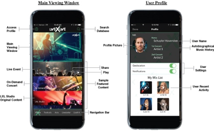 The LXL App ecosphere will include live video streaming, VOD, push notifications, festival-, venue- and original content-specific functionality, locally sold and programmatic ads capability, digital rights management, geo-blocking), the capability to display time-shifted content and enhanced functionality that will support social media sharing and user community. The main landing page of the LXL App will include a graphic depicting a featured performance at the top of the screen and options for viewing concurrent programming located below the graphic. The LXL App will also include a “Festivals” tab dedicated to ongoing and past festivals. We plan for this tab to allow users to view multiple stages of a single festival broadcasting live simultaneously. We believe this fun and simple interface layout, together with LiveZone, will highlight key content and encourage users to also discover our other content offerings.