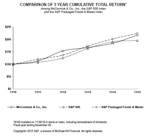 The following financial information from the Annual Report on Form 10-K of McCormick for the year ended November 30, 2015, filed electronically herewith, and formatted in XBRL (Extensible Business Reporting Language): (i) Consolidated Balance Sheets; (ii) Consolidated Statements of Income; (iii) Consolidated Statements of Comprehensive Income; (iv) Consolidated Statements of Stockholders’ Equity; (v) Consolidated Statements of Cash Flows; and (vi) Notes to the Consolidated Financial Statements.