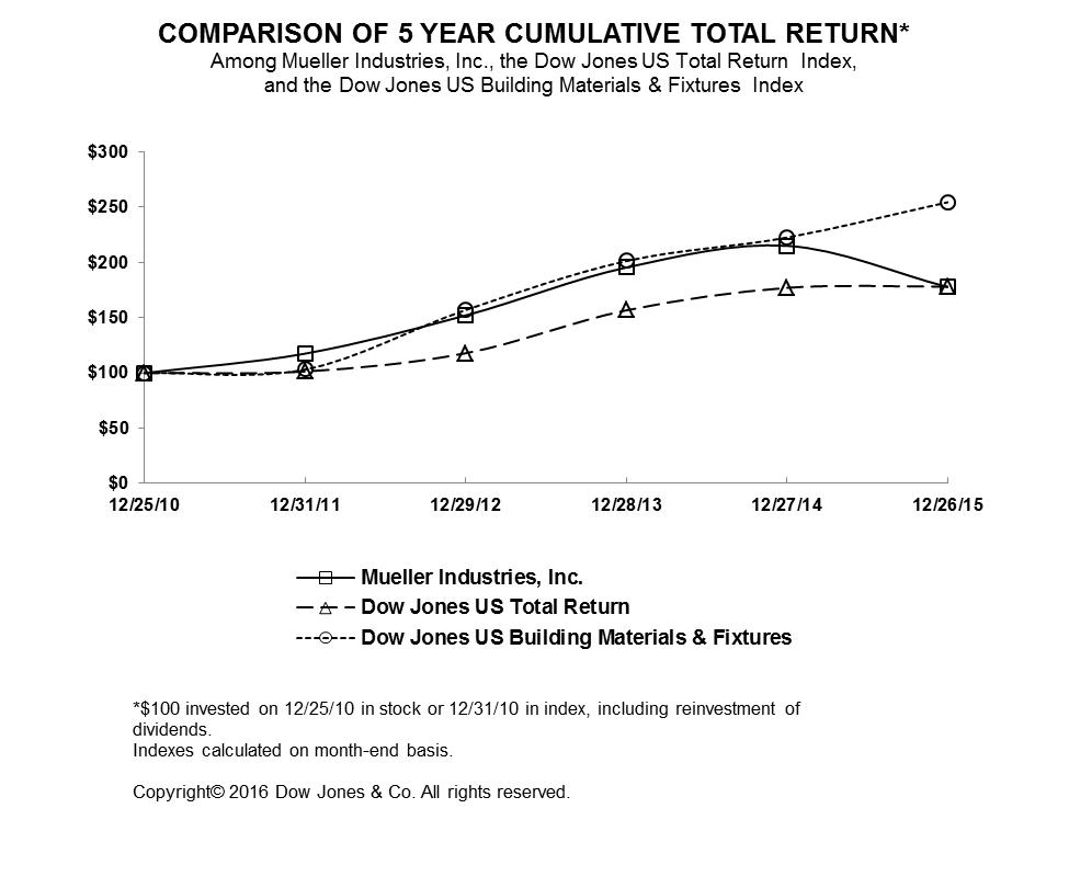 We have audited the accompanying consolidated balance sheets of Mueller Industries, Inc. as of December 26, 2015 and December 27, 2014, and the related consolidated statements of income, comprehensive income, changes in equity and cash flows for each of the three years in the period ended December 26, 2015. Our audits also included the financial statement schedule listed in the Index at Item 15(a). These financial statements and schedule are the responsibility of the Company's management. Our responsibility is to express an opinion on these financial statements and schedule based on our audits.