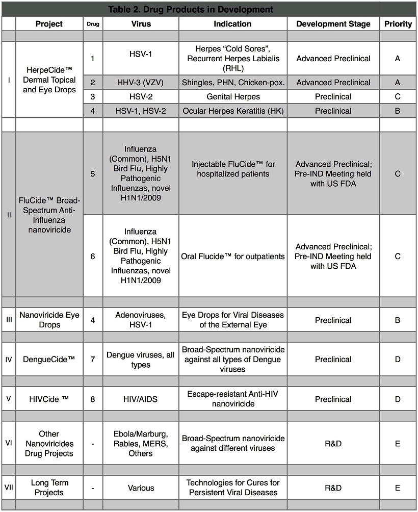 The Company does not claim to be creating a cure for viral diseases. The Company’s objectives are to create the best possible anti-viral nanoviricides and then subject these compounds to rigorous laboratory and animal testing towards US FDA and international regulatory approvals. Our long-term research efforts are aimed at augmenting the nanoviricides that we currently have in development with additional therapeutic agents to produce further improved anti-viral agents in the future. We believe that many viral infections that are at present untreatable or incurable would be curable using such an advanced approach.