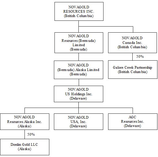 The Galore Creek Partnership (“Partnership”) is a general partnership formed under the laws of the Province of British Columbia on August 1, 2007 for the purposes of exploration, development and construction of the Galore Creek mine. The Partnership is 50% owned by NovaGold Canada Inc. (“NovaGold”), a wholly owned subsidiary of NOVAGOLD RESOURCES INC. and 50% owned by Teck Resources Limited (“Teck”). The Partnership owns 100% of Galore Creek Mining Corporation, which is the operator of the project.