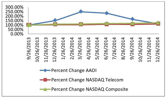 Employees of Global participate in a state-mandated social security program in China. Under this program, pension costs are recorded on the basis of required monthly contributions to employees’ individual accounts during their service periods. Under the regulations of the People’s Republic of China, Global is required to make fixed contributions to a fund, which is under the administration of the local labor departments. Employees of AOI—Taiwan participates in a pension program under the Taiwan Labor Pension Act. Pension expense for Global was $390,000, $384,000 and $244,000 in 2014, 2013 and 2012, respectively. Pension expense for AOI—Taiwan was $291,000, $203,000 and $168,000 in 2014, 2013 and 2012, respectively.