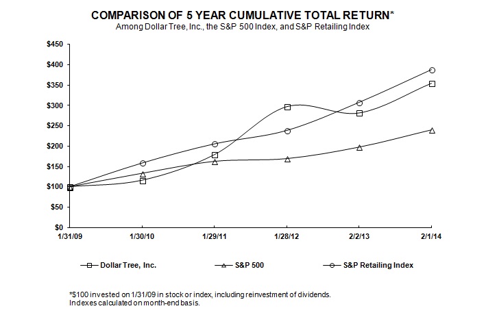 Issuer Uncollared Forward Repurchase Transaction Supplemental Confirmation dated September 17, 2013 between J.P. Morgan Securities LLC, as agent for JPMorgan Chase Bank, National Association, London Branch, and Dollar Tree, Inc. (Exhibit 10.4 to the Company's September 17, 2013 Current Report on Form 8-K, incorporated herein by this reference)
