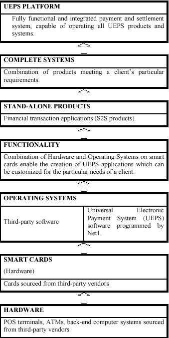 The UEPS is a suite of programs that make use of the FTS methodology to deliver an integrated information, payment, switching and settlement environment that underpins our transaction processing system. The programs of the UEPS include the software that operates on the smart cards and the POS terminals, as well as all of those that manage and control the host environment. In other words, all programs that are required to operate the UEPS, including the smart card functionality, the POS devices which allow our smart cards to transact with each other in an off-line manner and our back end host system that primarily provides an audit trail of all transactions effected, form part and parcel of our offering to our corporate customers or licensees.